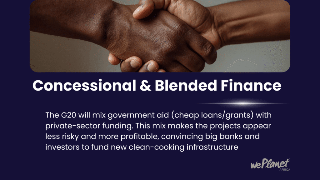 - Concessional Finance and Blended Finance: Using public and philanthropic capital to de-risk investments and attract private sector funding for clean cooking infrastructure.